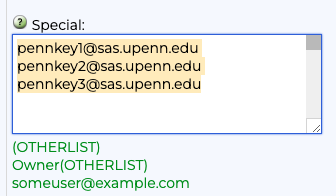 OTHERLIST → all members of OTHERLIST Owner(OTHERLIST) → only owners of OTHERLIST
